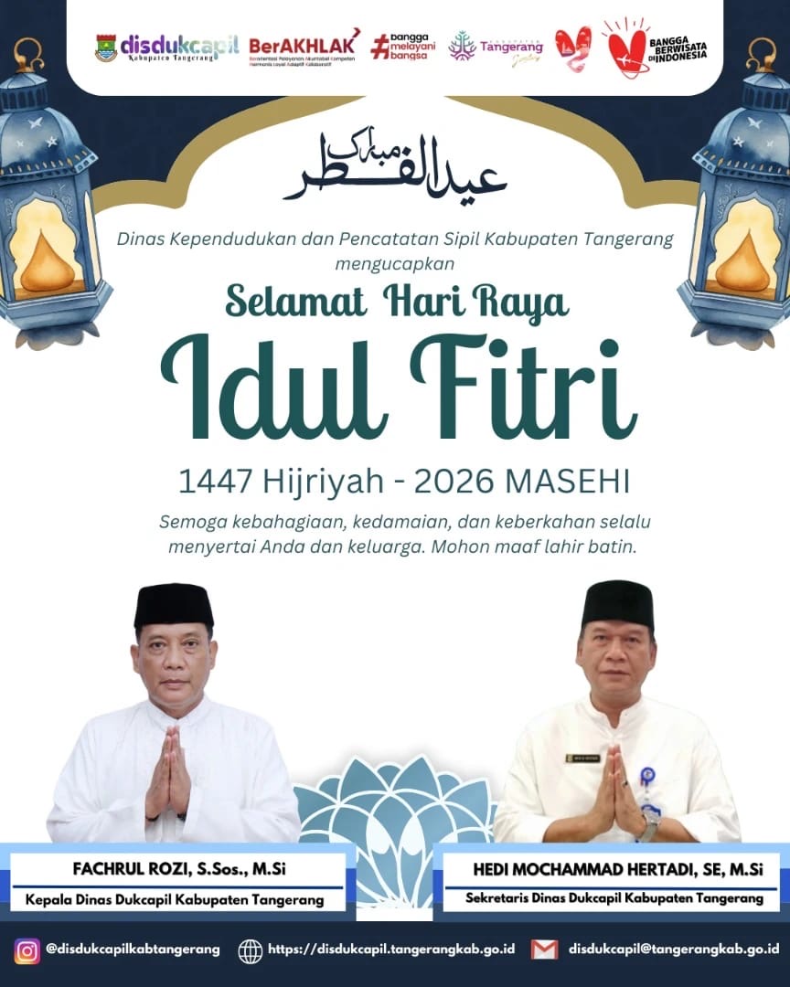 Disdukcapil Kabupaten Tangerang Mengucapkan Selamat Hari Raya Idul Fitri 1447 Hijriyah – 2026 Masehi